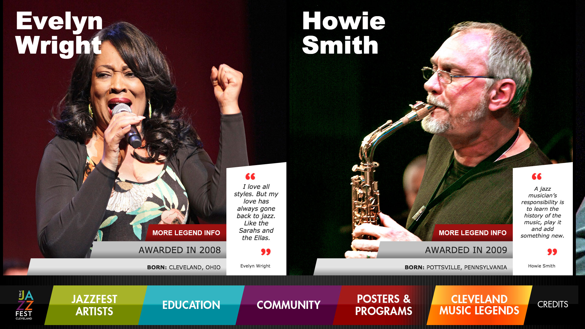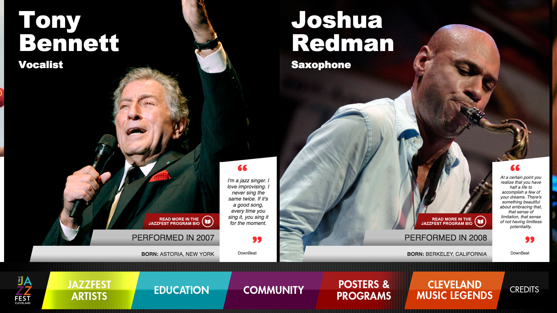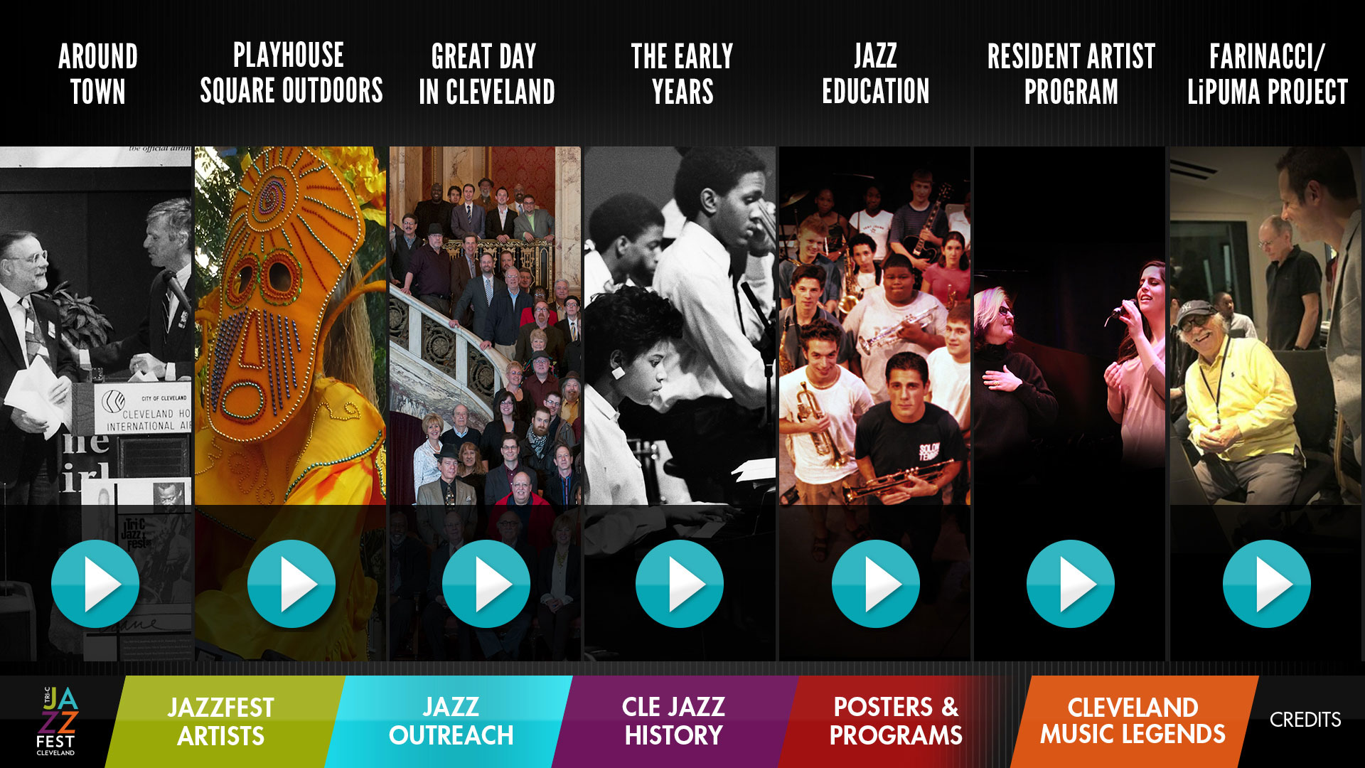Impact was brought in to design and create an interactive multimedia program to highlight the history of Cuyahoga Community College’s internationally renowned JazzFest. The application would celebrate the huge collection of international jazz musicians who played the annual festival during its 40-year history. The interactive program was designed to reside in two 55” touch screen monitors, which allow guests to easily explore the enormous collection of text, art, music, and videos related to JazzFest.